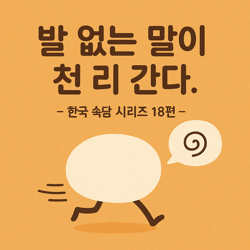 – 한국 속담 시리즈 18편 –🌀 발 없는 말이 천 리 간다 📌 속담 뜻**“발 없는 말이 천 리 간다”**는사람들의 말이 비록 눈에 보이지 않지만 굉장히 빠르게 멀리 퍼진다는 뜻이야. 특히 소문이나 뒷말, 심지어 속삭임조차도 언젠가는 본인 귀에 들어가게 된다는 경고이기도 해. 🧶 유래와 배경 ‘천 리’는 아주 먼 거리야. 과거엔 말을 타고 며칠을 가야 닿을 거리인데,그 먼 곳까지 말만으로 퍼진다는 건 그만큼 말의 힘과 전파 속도가 빠르다는 걸 말해주지.“그 얘기 아무한테도 말하지 말랬는데,벌써 아는 사람 다 알더라니까?발 없는 말이 천 리 간다더니 딱이야~”이런 식으로 입조심과 말의 무게를 상기시켜주는 속담이야. 🌍 외국 속담과 비교 비슷한 의미의 영어 속담도 있어:"Gossip travels ..