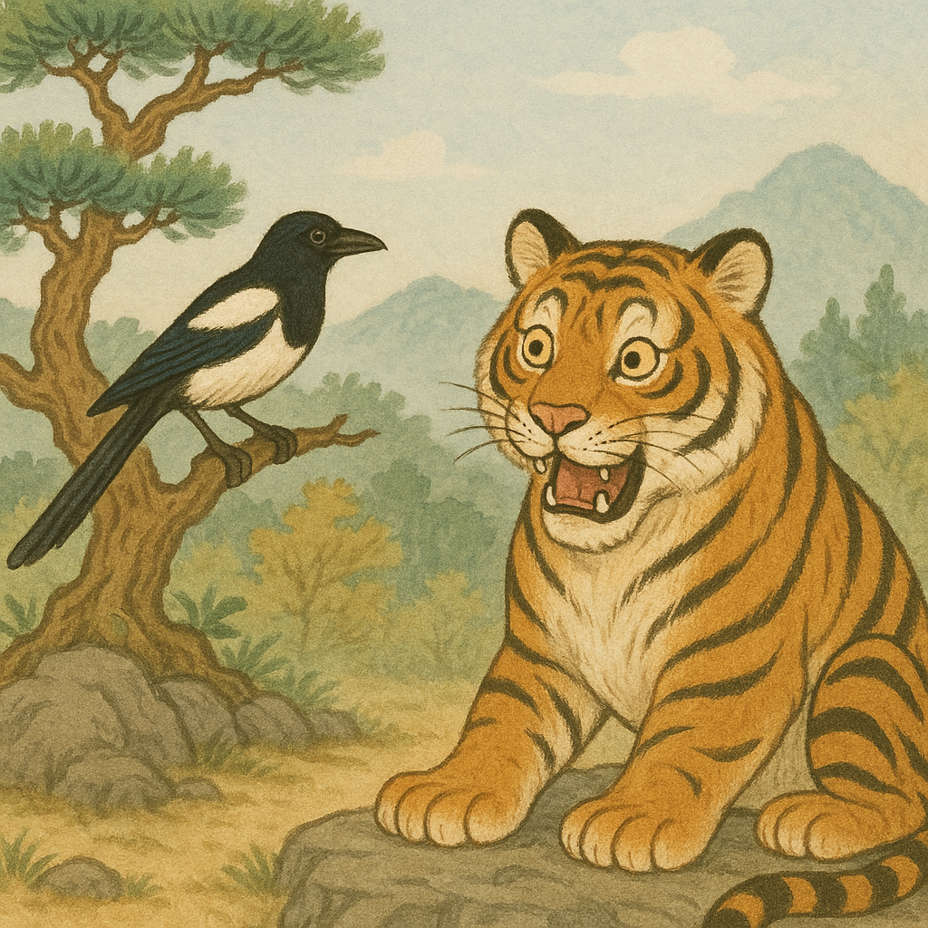 한국 설화 시리즈 15편 : 까치와 호랑이🐯 이야기가 시작되다옛날 깊은 산속에 한 마을이 있었어요.그 마을 근처엔 무서운 호랑이가 살고 있어 마을 사람들은 항상 두려움에 떨고 있었죠.하지만 어느 날부터인가 호랑이가 사람을 해치지 않고 오히려 마을 주변을 조용히 지키는 일이 생기기 시작했어요.그 이유에는, 까치 한 마리와 호랑이의 우정과 은혜의 이야기가 숨어 있었죠.🐦 은혜 갚은 까치이야기는 이렇게 시작돼요.어느 날 덫에 걸린 까치 한 마리를 호랑이가 발견했어요.까치는 힘겹게 날갯짓하며 살려달라고 애원했고, 호랑이는 덫을 부수고 까치를 놓아주었어요.그날 이후 까치는 매일 아침마다 높은 나무에 올라가, 호랑이에게 위험을 알리고, 먹을 것이 있는 곳을 알려주며 도움을 주었죠.🧑‍🌾 마을 사람과의 갈등그..