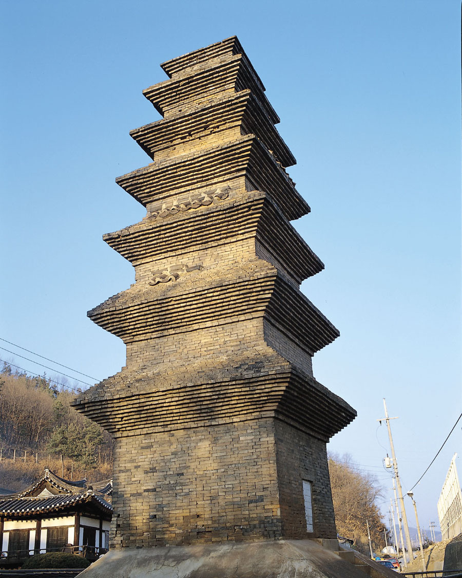 전탑(塼塔)은 벽돌을 쌓아 만든 탑을 말하지만, 이 탑은 돌을 벽돌 모양으로 다듬어 쌓은 독특한 구조입니다.