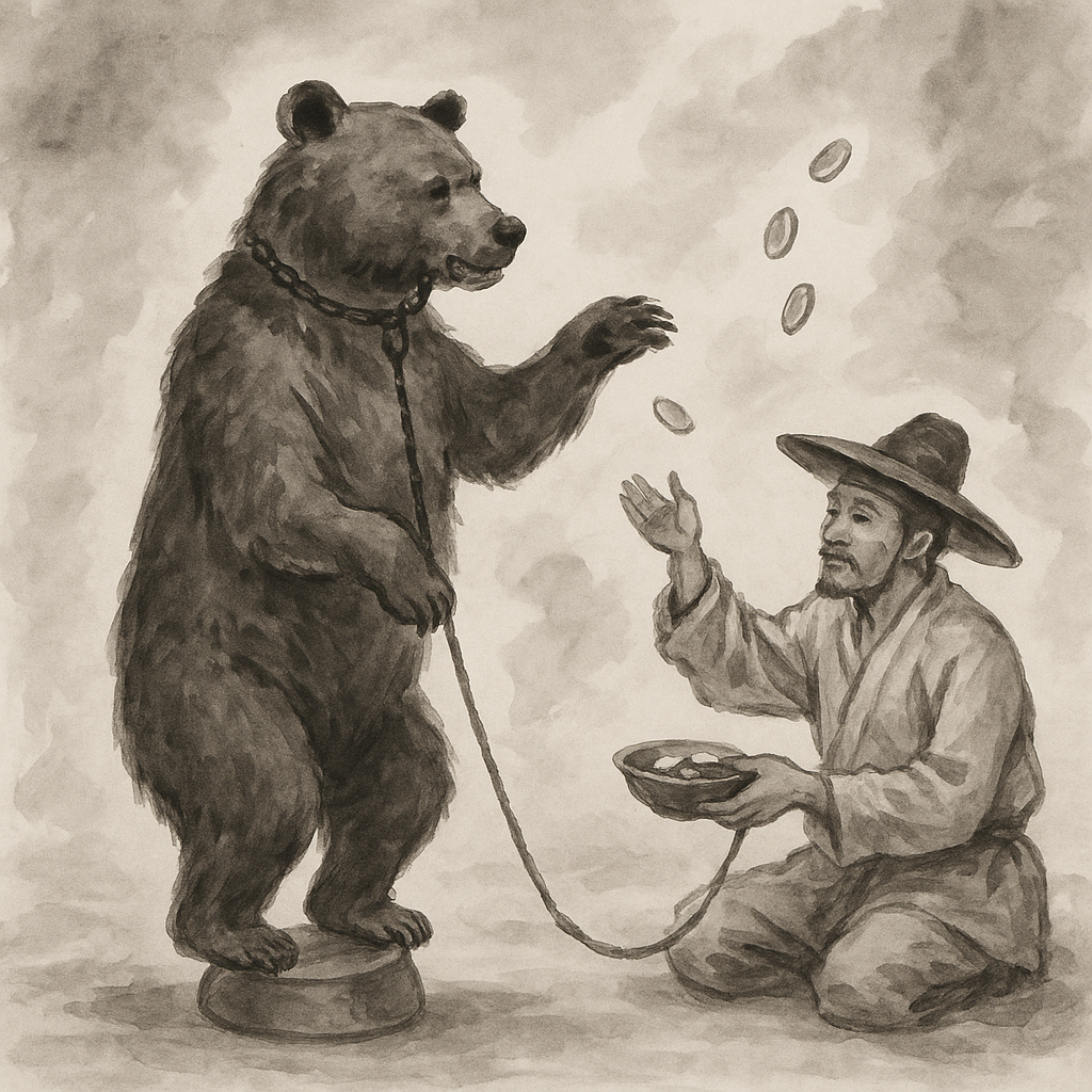 옛날에는 곰이 재주를 부려 사람들을 즐겁게 하면 실제 돈은 곰이 아닌 곰의 주인이 챙겼던 데서 유래했어요.