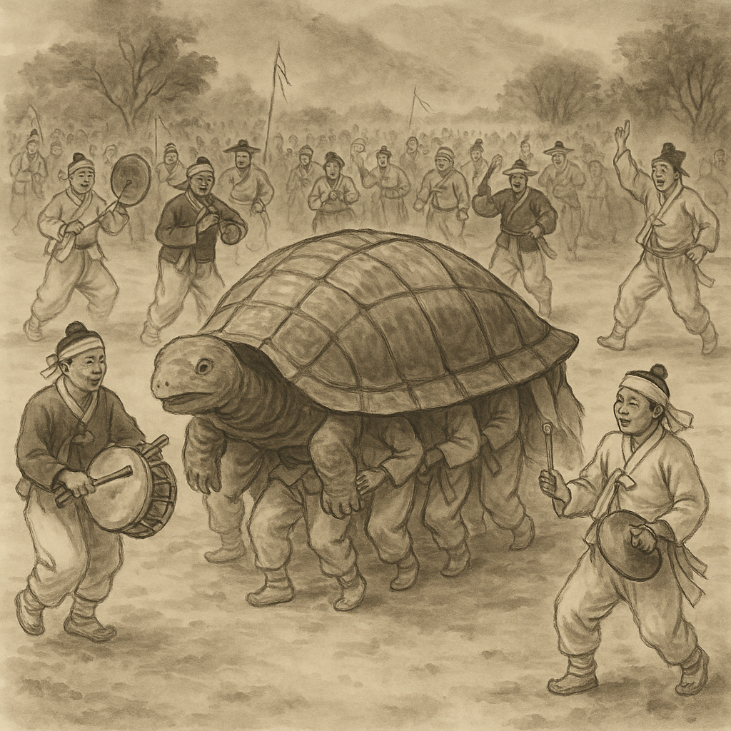 거북놀이는 단순한 오락이 아니라, 마을의 안녕과 풍요를 기원하는 상징적 놀이야.