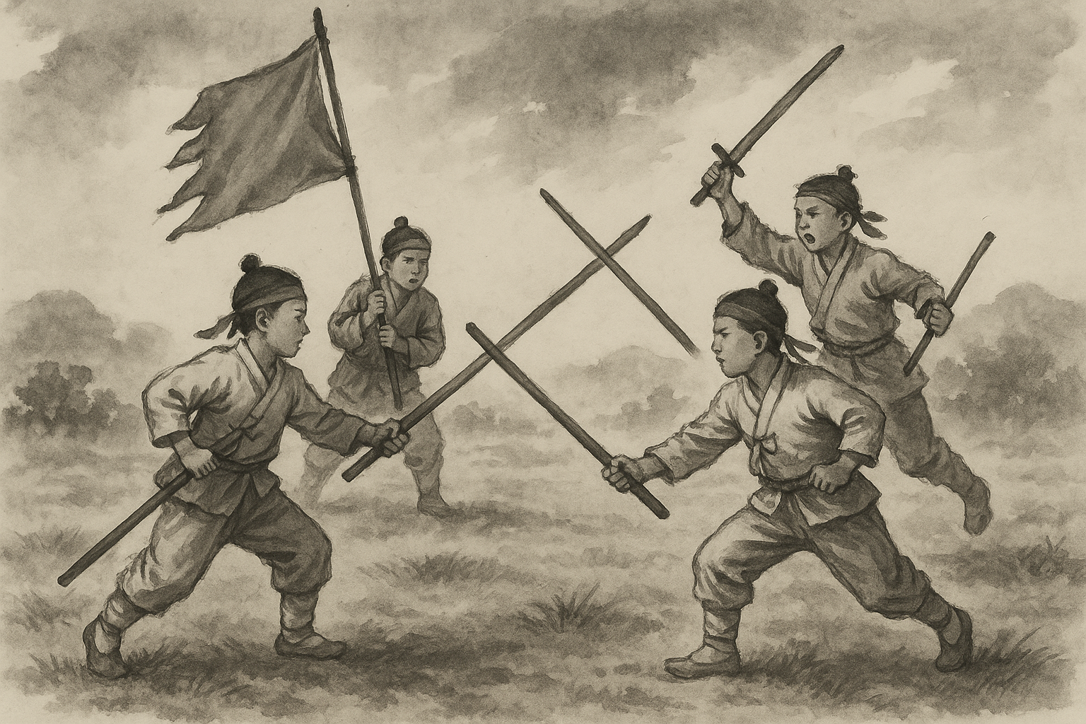 장난감이 많지 않던 시절, 아이들은 막대기와 돌멩이, 흙더미를 무기로 삼아 자연스럽게 용기·리더십·협동심을 배우며 놀았습니다.