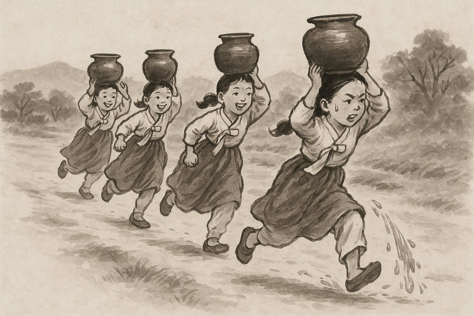 물동이 이고 달리기는 단순한 경주가 아니라, 균형·인내·생활의 지혜를 배우는 놀이야.