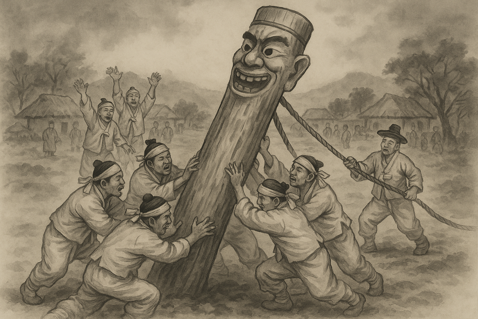 장승세우기 놀이는 단순히 장난이 아니라, 마을의 단합과 보호, 웃음과 기원을 함께 담은 놀이야.