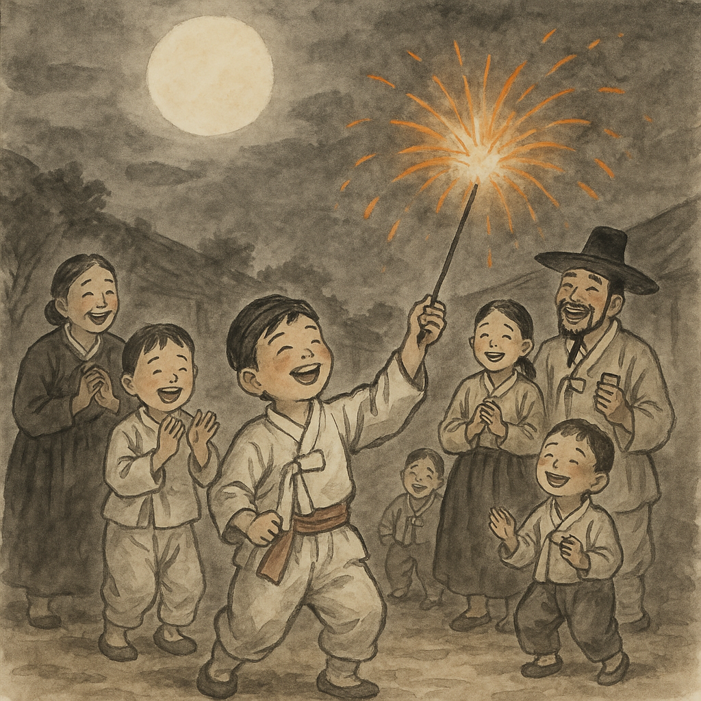 아이들에게 폭죽놀이는 단순한 장난이 아니라, 하늘로 솟는 불빛 속에 희망과 소원을 담는 의례적 놀이였습니다.