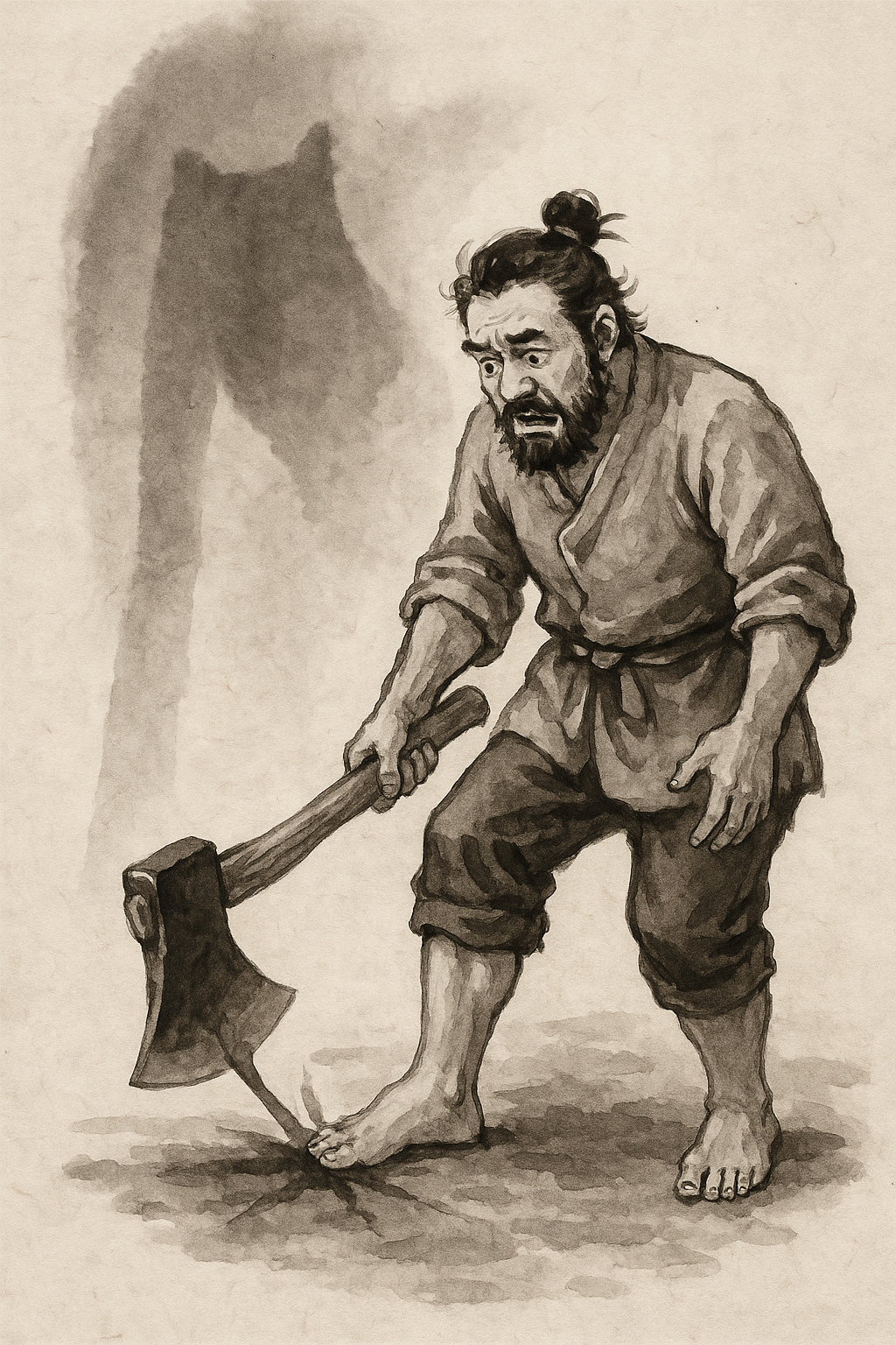 The Korean proverb “믿는 도끼에 발등 찍힌다” literally translates to: