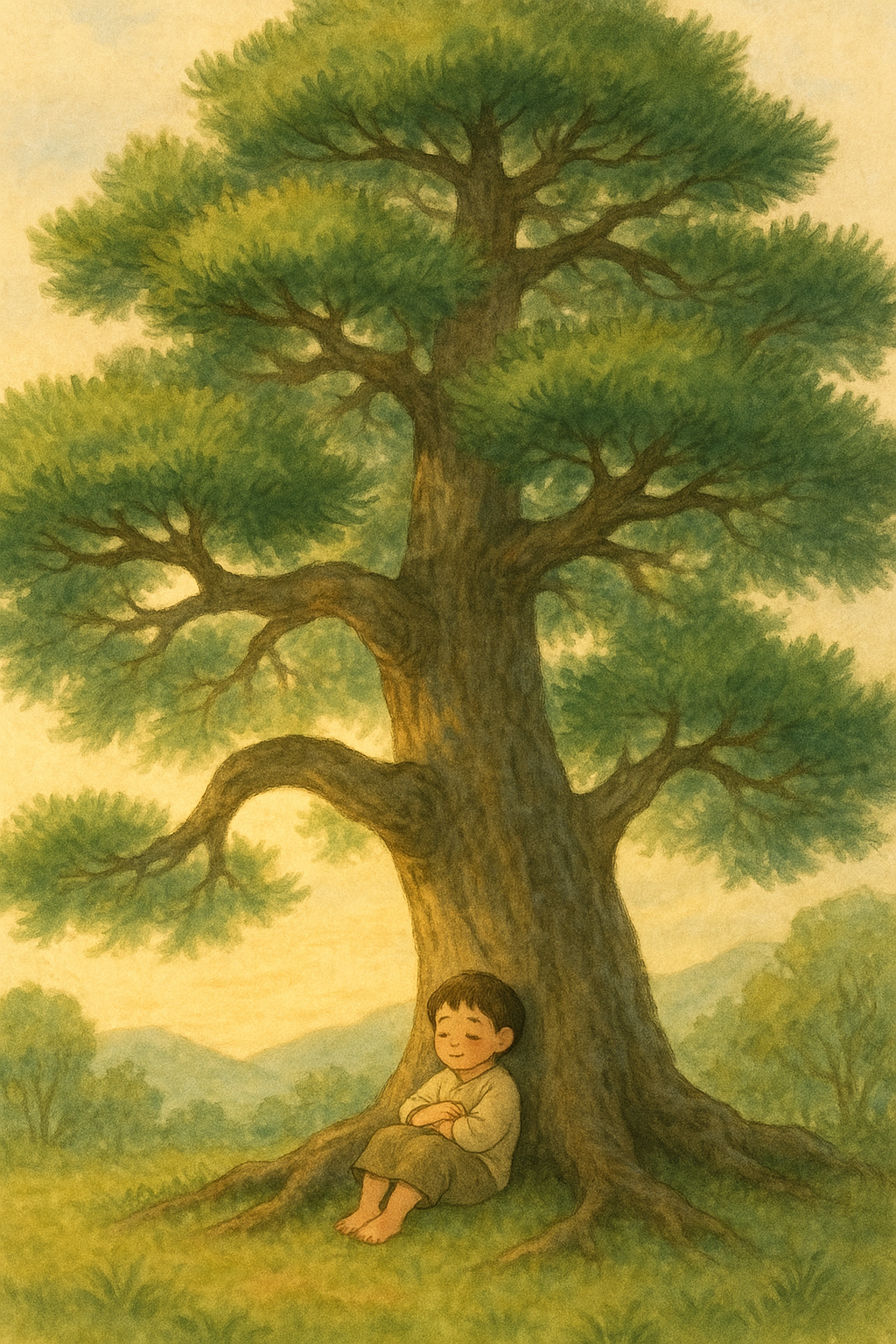 이 소나무 아래에는 전쟁으로 부모를 잃고 떠도는 한 아이가 자주 앉아 있었어요.