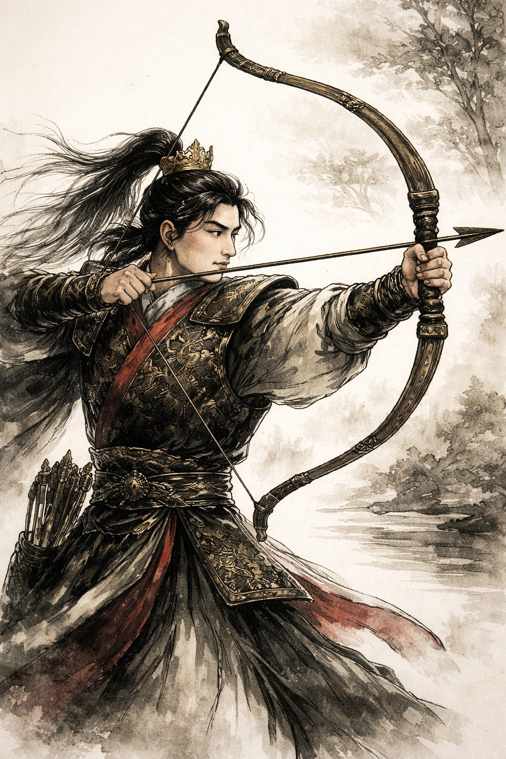 전해지는 이야기 속에서 주몽은 활을 매우 잘 쏘는 인물로 등장합니다.