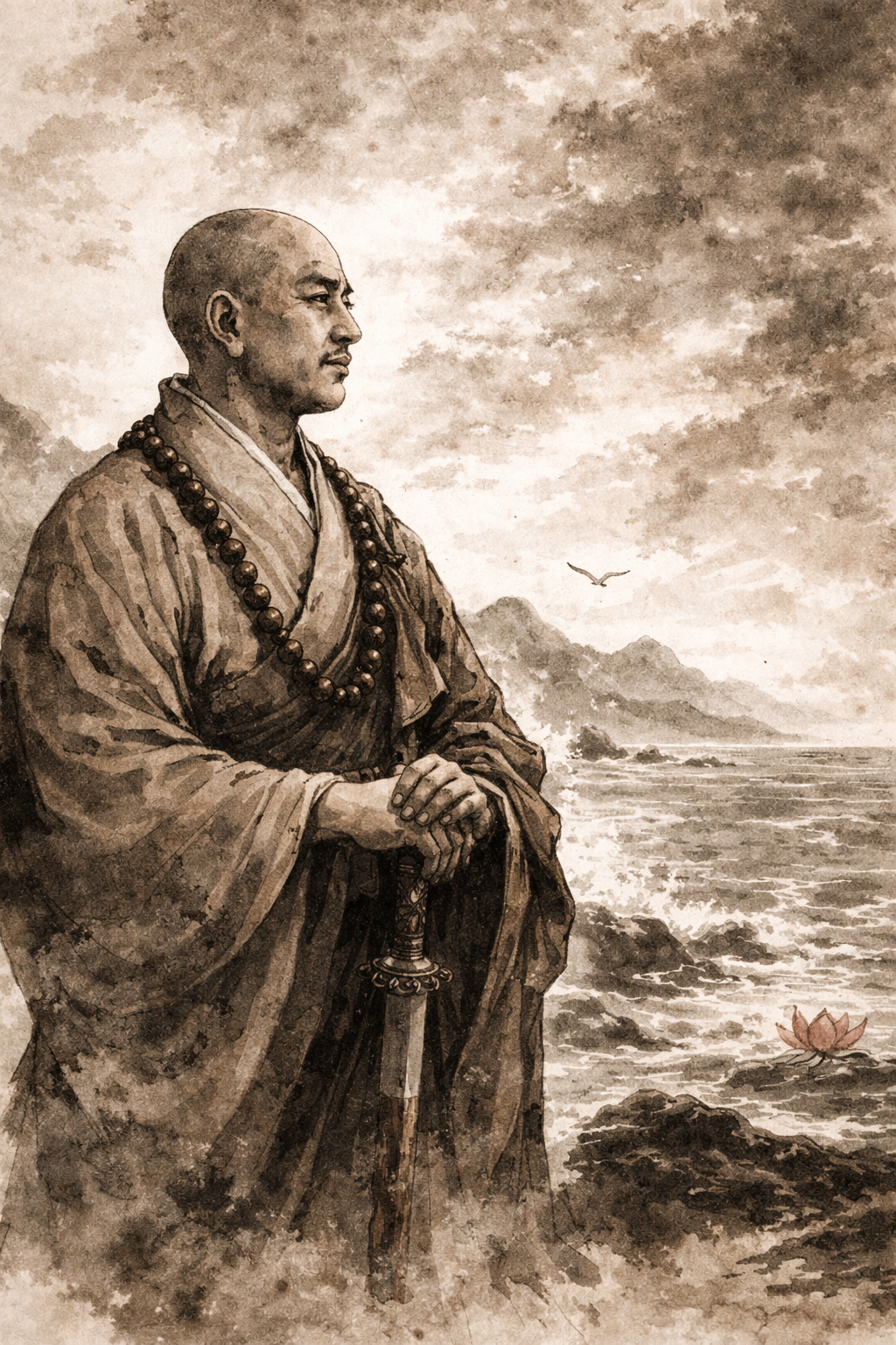 전해지는 이야기 중에는 그가 바다를 건너려 할 때 폭풍 속에서도 뜻을 굽히지 않았다는 내용이 있습니다.