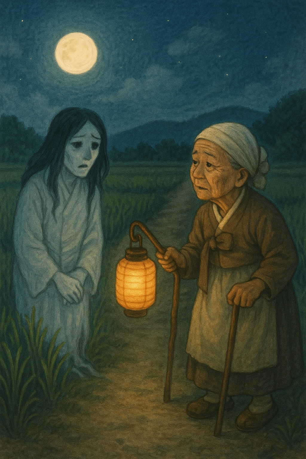 그 뒤로 논두렁 귀신은 다시 나타나지 않았고, 마을엔 평화가 찾아왔다고 해요.