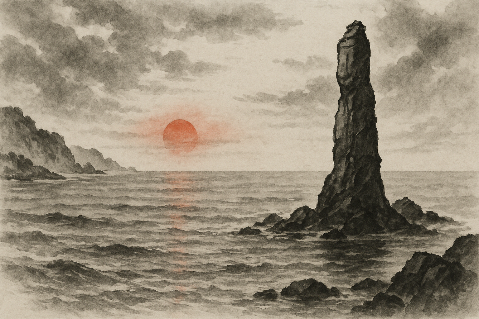 그의 몸은 그대로 바위로 변해, 바닷가에 홀로 솟구치게 되었습니다. 사람들은 그 모습이 마치 촛불을 켜놓은 촛대 같다고 해서 ‘촛대바위’라 부르게 되었습니다.