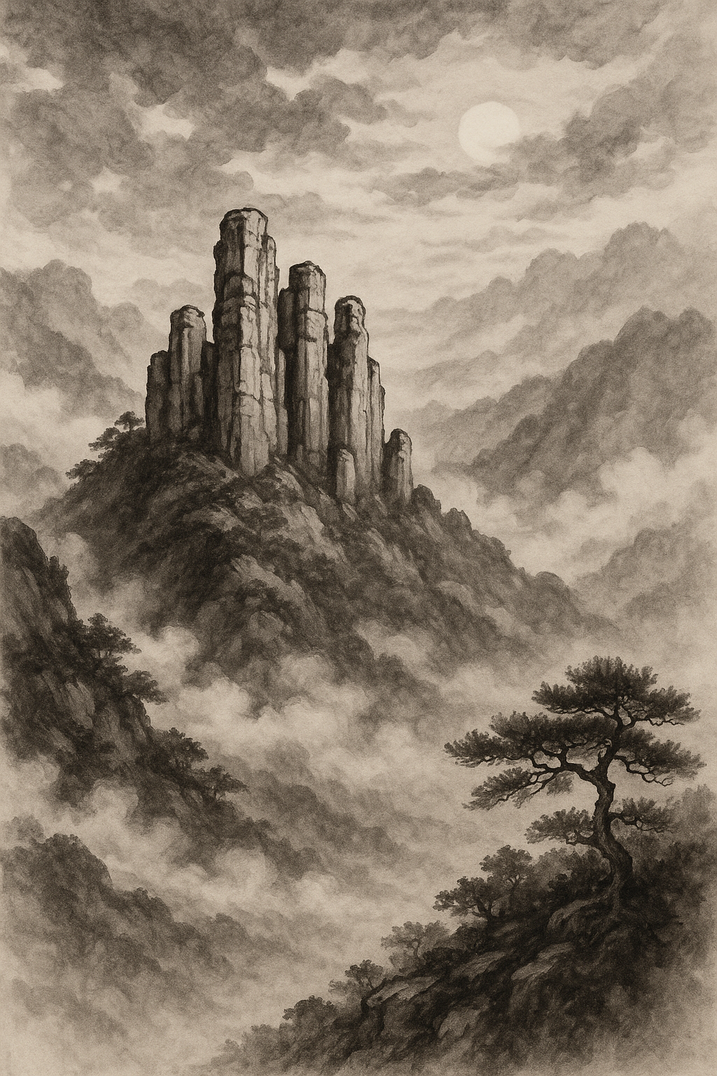 이에 노한 신선은 잔치상을 하늘로 거둬들이며, 그 자리에 있던 바위와 기둥들을 그대로 굳혀 버렸습니다.