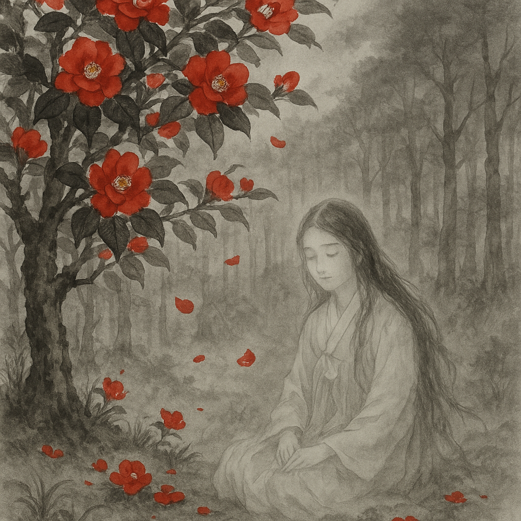그날 이후 대원사 숲에 동백나무가 자라기 시작했고, 겨울 눈 속에서도 붉게 피어나는 동백꽃은 소녀의 마음을 닮은 듯 했습니다.