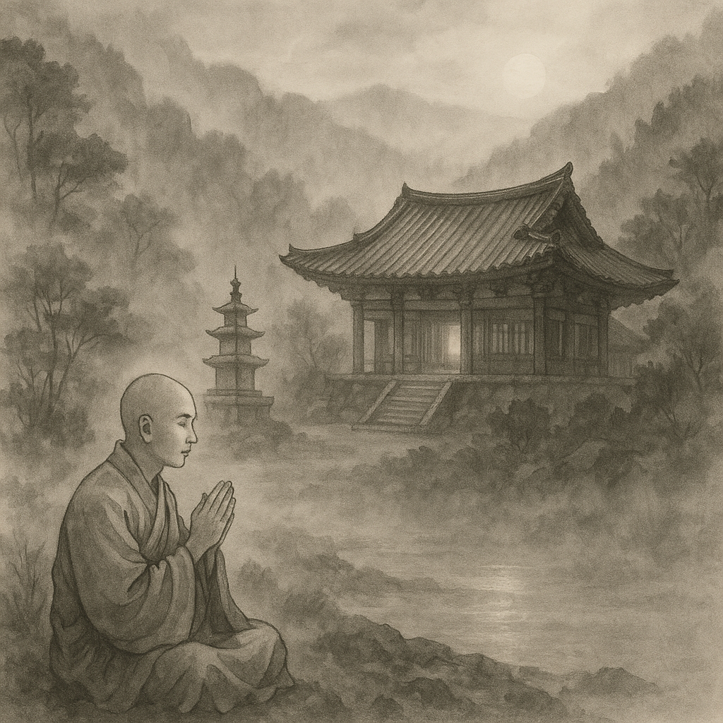 그가 마지막으로 염불을 마치자, 법당 안이 은은한 빛으로 가득 차고, 향기로운 연기가 천천히 하늘로 올라갔다고 합니다.