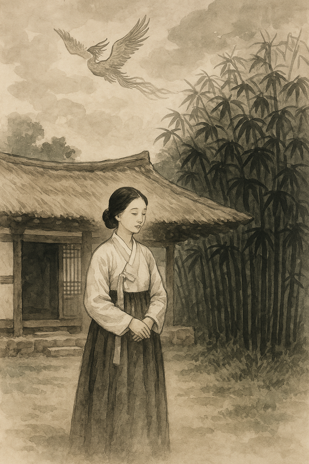 그리고 오죽이 하늘을 찌를 듯 곧게 자란 어느 날, 신사임당은 태몽 속에서 검은 봉황이 푸른 산 위를 날아올라 연못으로 내려앉는 꿈을 꾸지.