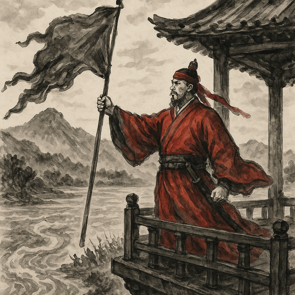 그는 붉은 옷을 입고 붉은 깃발을 들어, 스스로 군사를 모아 나라를 지키고자 했습니다.