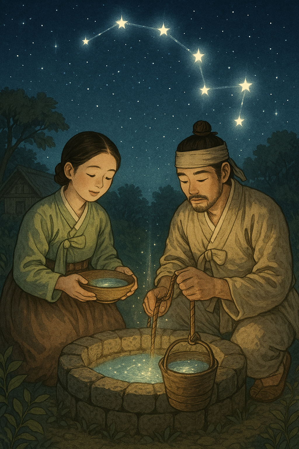 옛날 옛적, 아이를 갖지 못해 슬퍼하던 부부가 있었어요. 그들은 매일 밤 하늘의 북두칠성 앞에 정성스레 기도했어요.