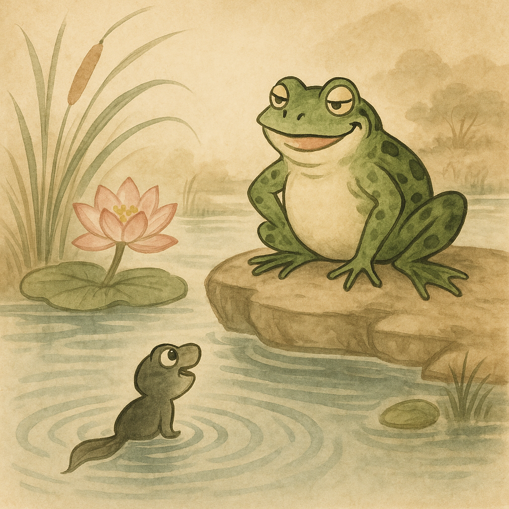 개구리도 처음엔 작은 올챙이였지만, 그 시절을 잊고 남을 무시하거나 비판하는 행동을 풍자하는 거죠.