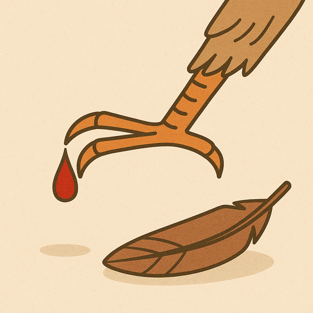 작고 가는 새의 발에 맺힐 피가 얼마나 적겠어? 그만큼 미미하고 하찮은 것을 뜻하지.