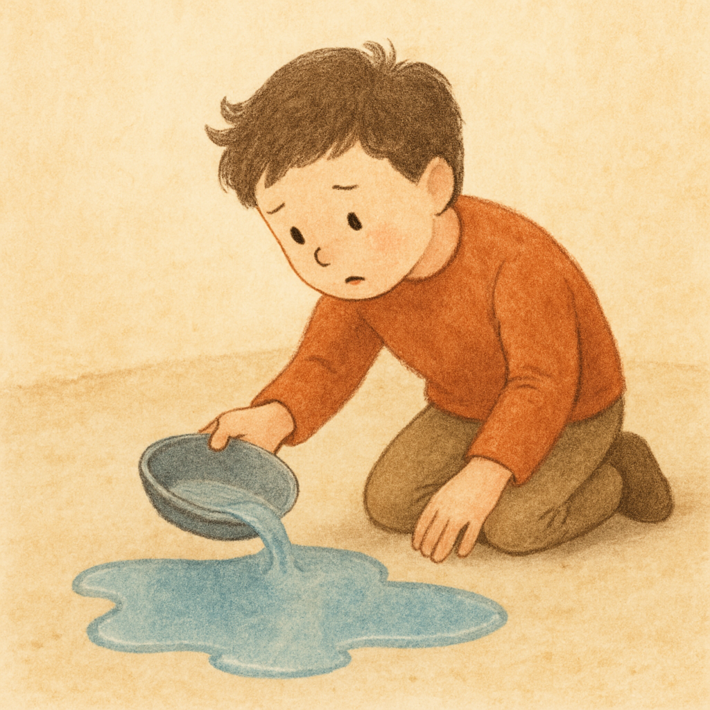 “엎질러진 물은 다시 담을 수 없다”는 이미 한 일이거나 지나가버린 일은 되돌릴 수 없으니 후회해도 소용없다는 뜻이에요.