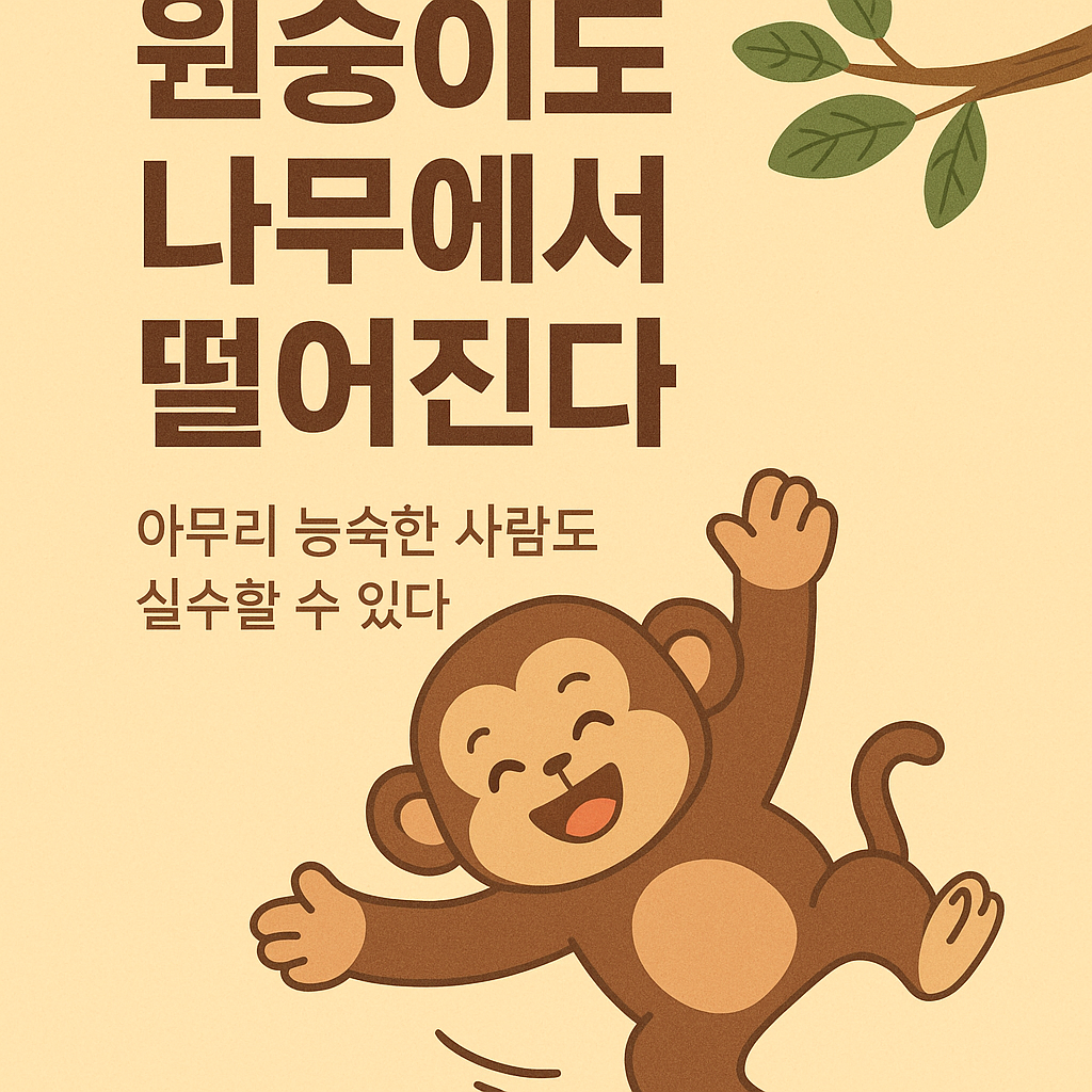 ‘원숭이도 나무에서 떨어진다’는 말은 아무리 익숙하고 능숙한 사람이라도 실수를 할 수 있다는 뜻이야.