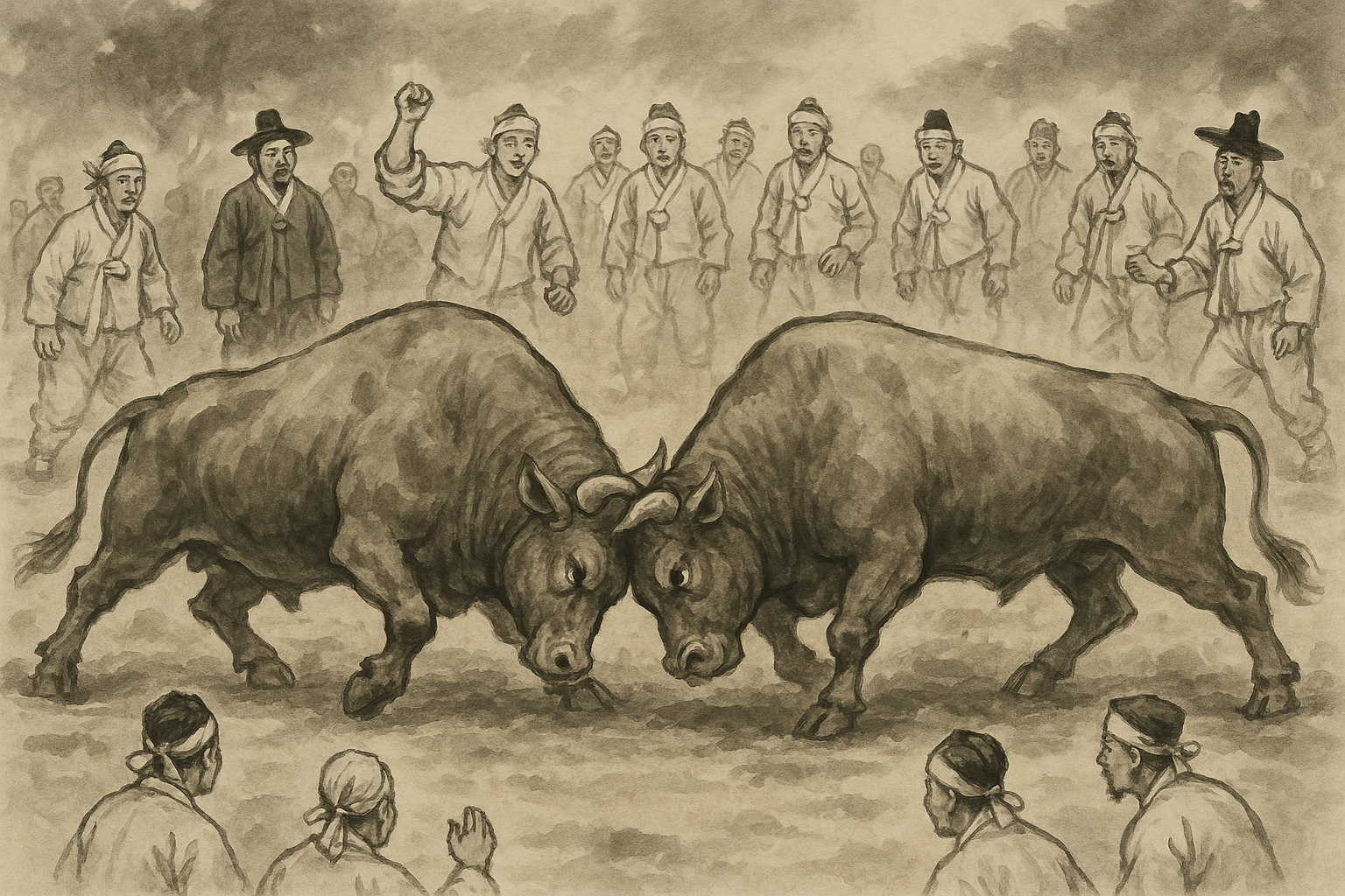 소싸움은 단순히 소의 힘을 겨루는 경기가 아니라, 마을 사람들이 하나 되어 즐기던 삶의 큰 축제였어.