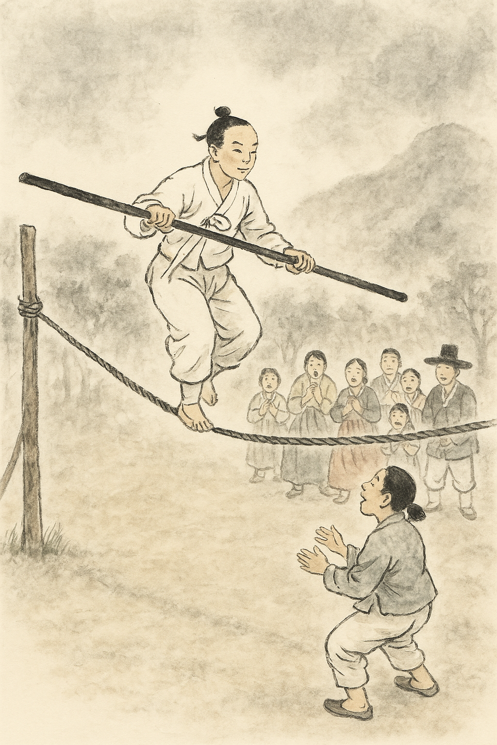 외줄타기는 단순한 기술이 아니라, 위험을 즐기면서도 균형을 찾는 삶의 은유예요.