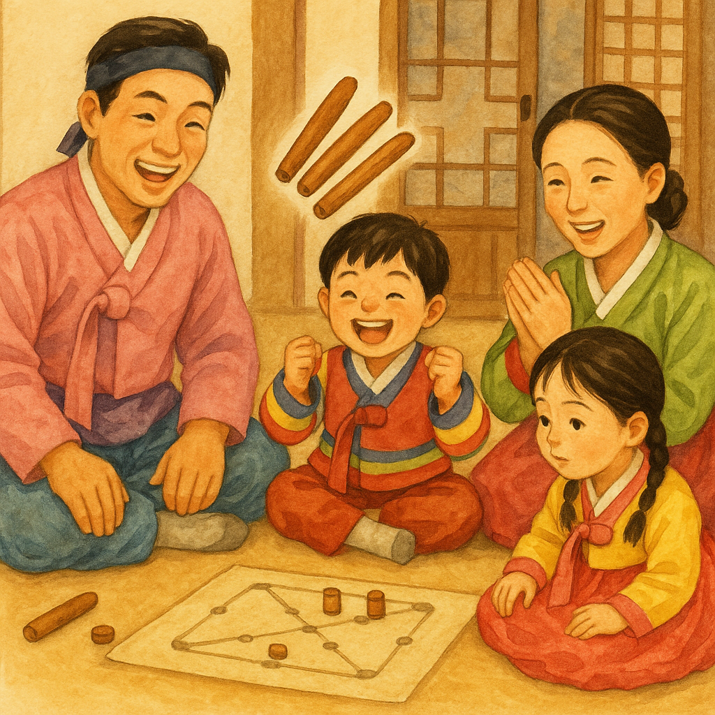 윷놀이는 네 개의 윷가락과 윷판을 이용해 말을 움직이는 보드게임으로, 설날과 명절에 온 가족이 함께 즐기던 대표 놀이입니다.