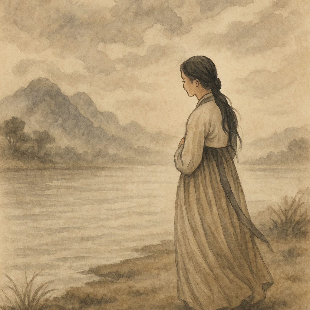 Long ago, on the western coast of Korea, there lived a devoted woman whose husband had been sent away on a long journey across the sea. Before he left, they stood by the shore and promised to reunite no matter how many years might pass.