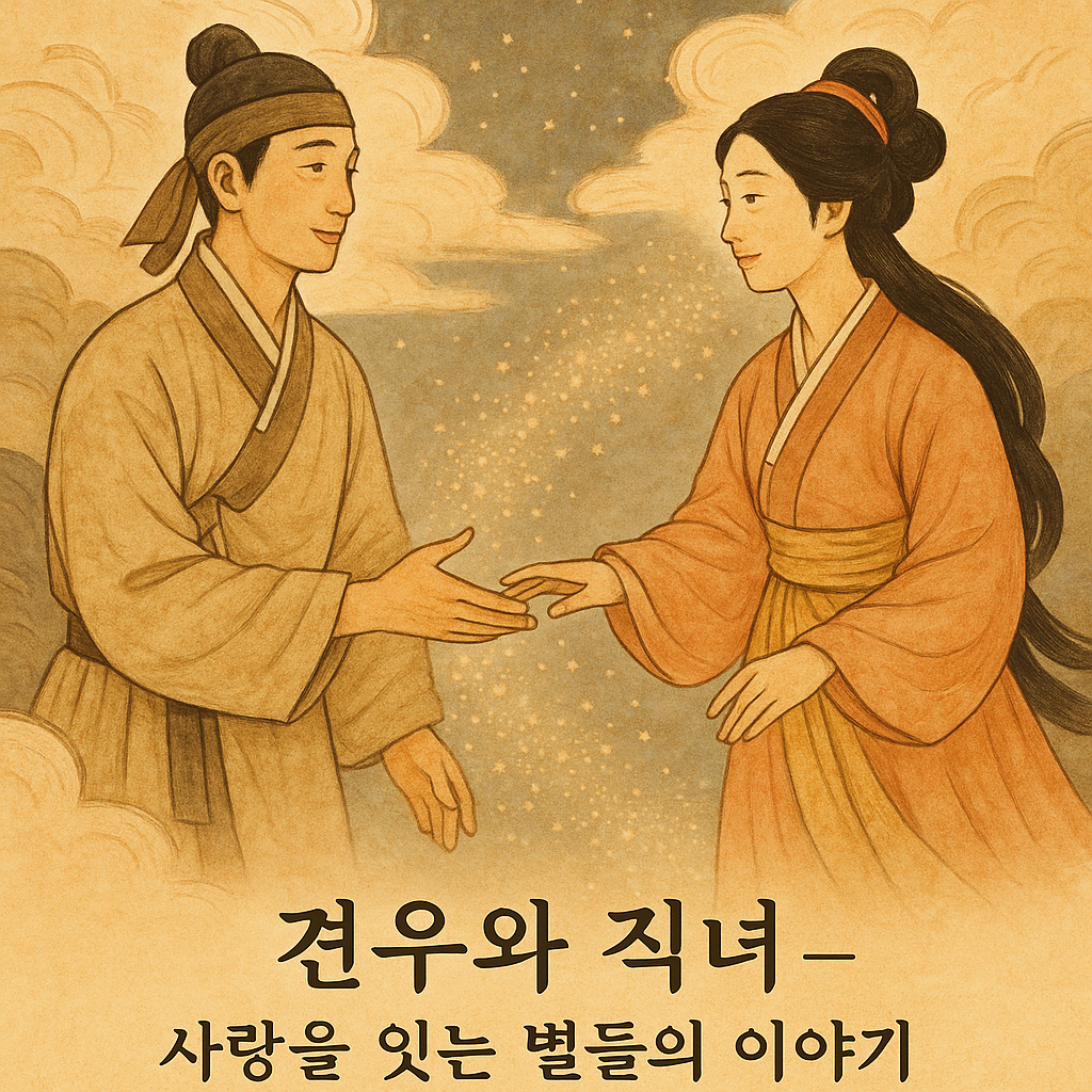 High in the heavens, there lived Jiknyeo, the Weaver Girl — a graceful princess whose duty was to weave the clouds into magnificent garments for the gods. On the opposite side of the Milky Way resided Gyeonwoo, the Cowherd — a humble and diligent young man who tended the celestial herds.