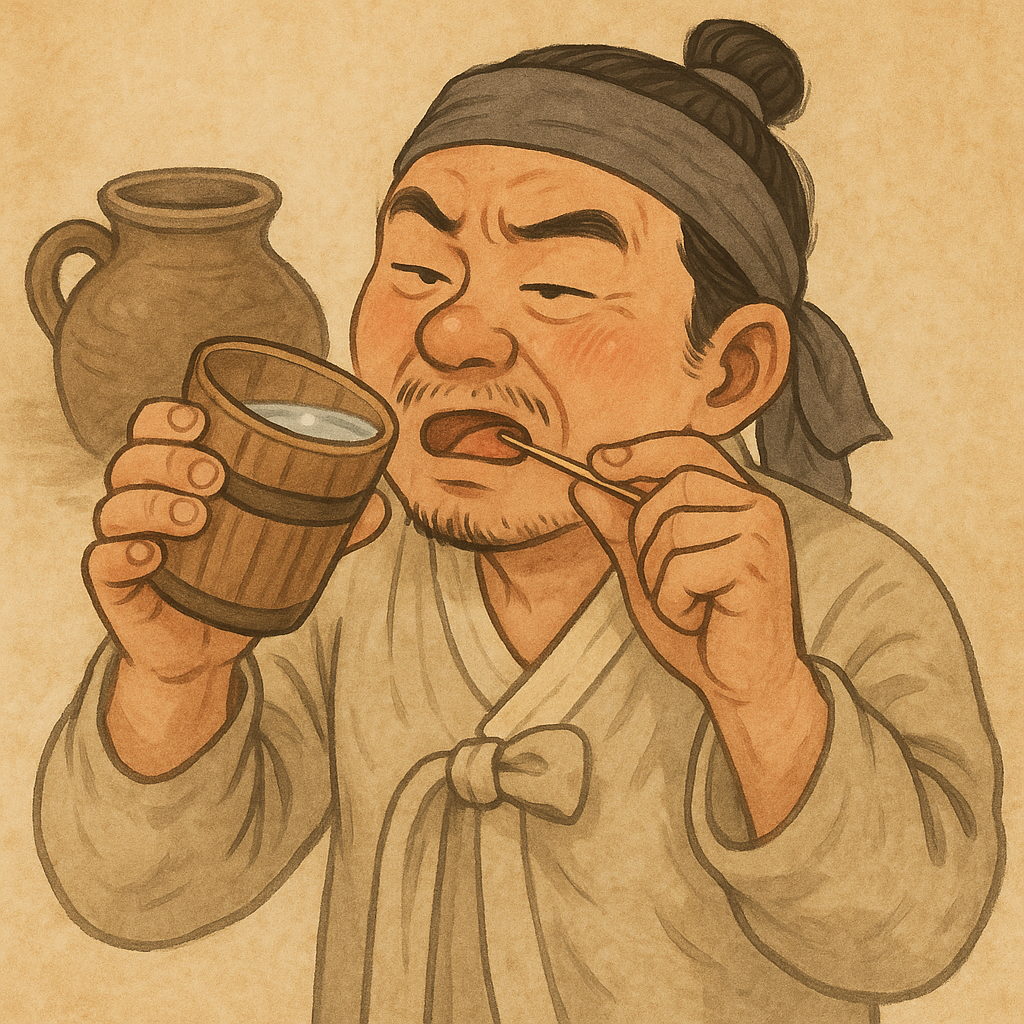 The Korean proverb “냉수 먹고 이쑤신다” literally means