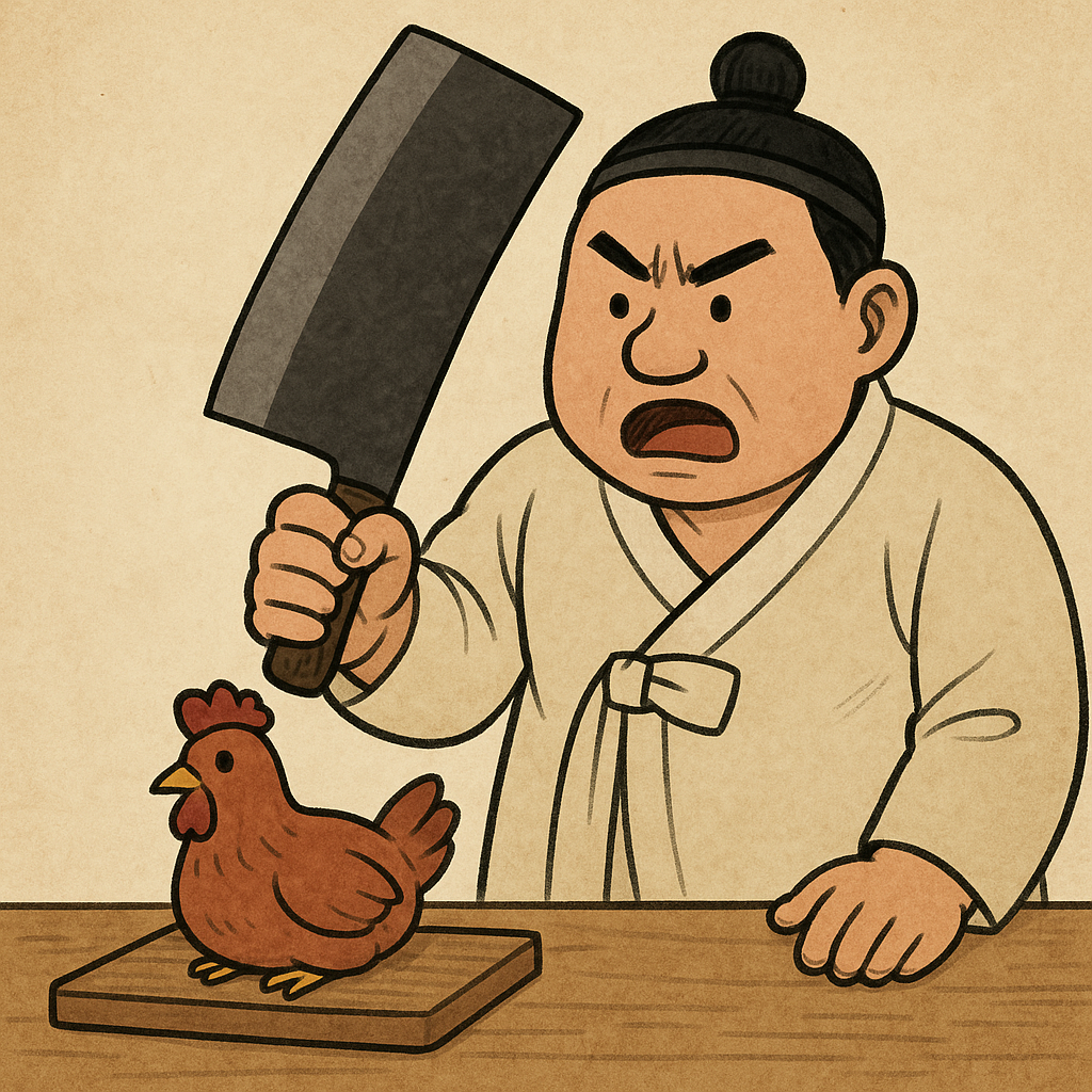 Korean Proverb : Using a Cow-Killing Knife to Catch a Chicken