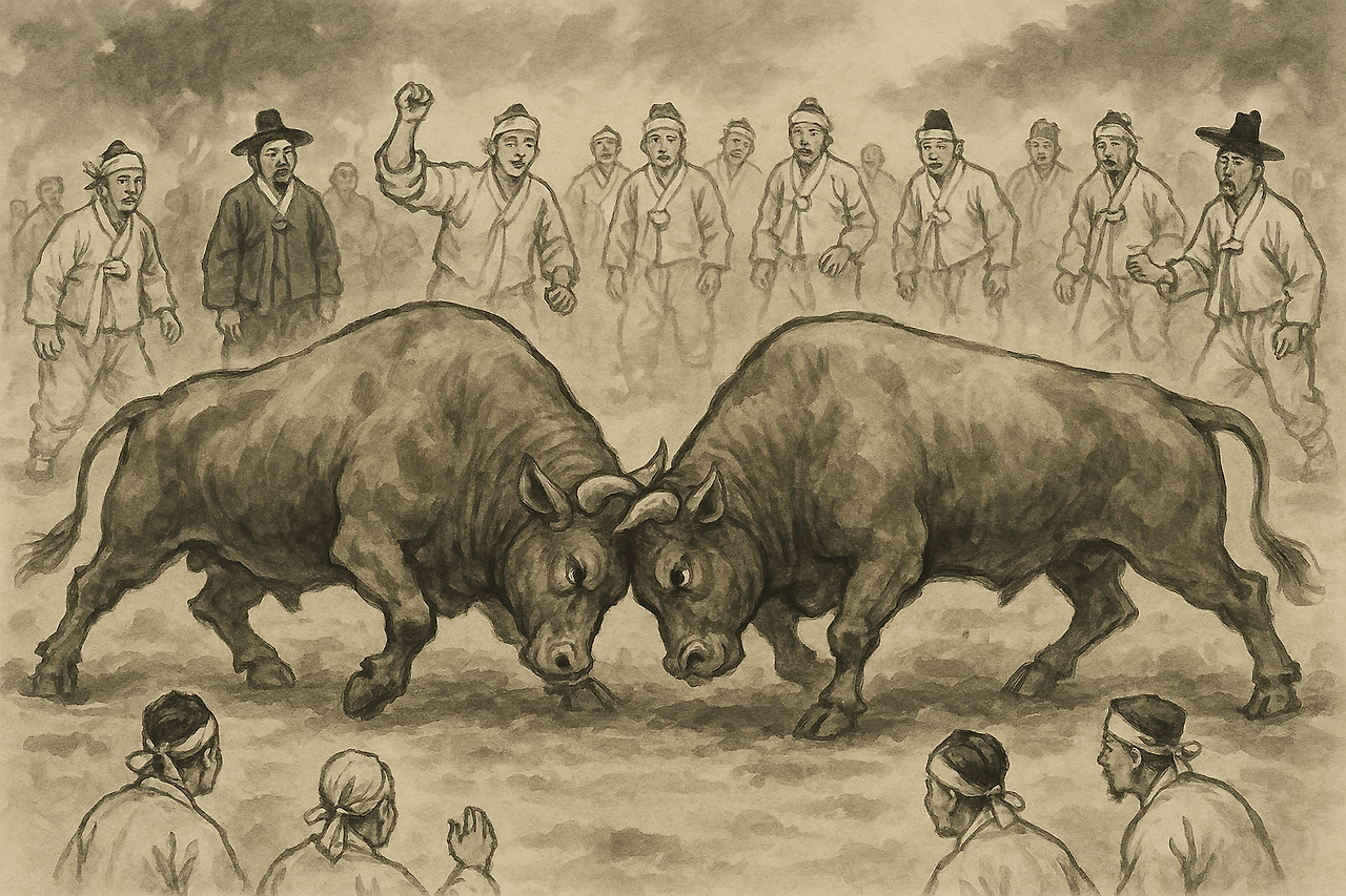 Sossaum (소싸움), or Korean bullfighting, is a traditional rural sport in which two bulls compete for strength, balance, and endurance.